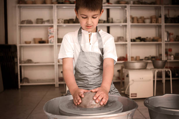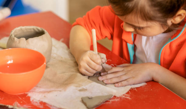 Alumna realizando un vaso en barro con la técnica del apretón y decorándolo con la técnica decorativa de adiciones