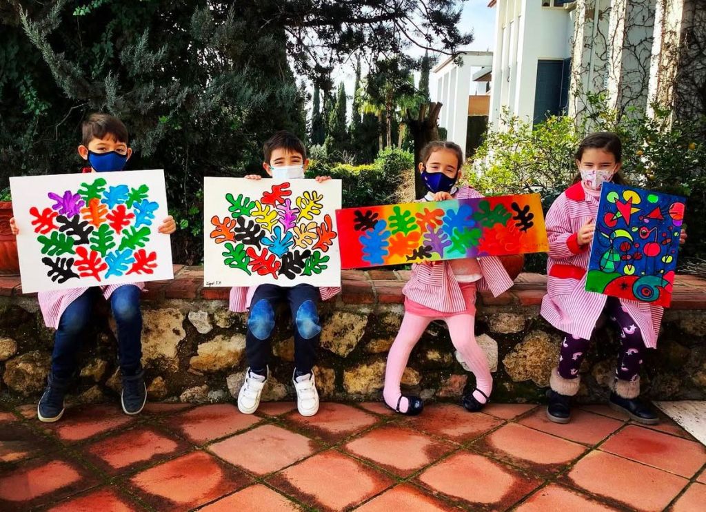 Alumnos de Mi Primera Obra de Arte trabajando la teoría del color con Henry Matisse Joan Miró durante la pandemia