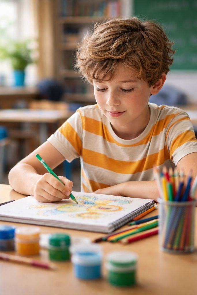 «Como ejemplo, el arte es una herramienta poderosa para ayudar a los niños con hiperactividad y falta de atención, (como es el caso del TDAH). Las actividades artísticas ofrecen beneficios específicos que promueven tanto el desarrollo físico como la autorregulación emocional y la mejora de la atención.»